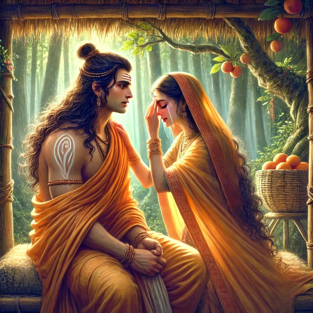 Kardama gently wiped away her tears. "Devahuti," he said, his voice a soothing balm, "you are no ordinary woman. If only you could see what I see. You are not unfortunate; you are destined for greatness. The universe has chosen you, my beloved, to bear the one destined to change everything—the mighty Lord Narayan will enter this world through you.